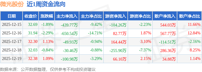 资金流向数据方面,本周微光股份主力资金合计净流出1271.67万元,游资资金合计净流出46.86万元,散户资金合计净流入1318.53万元。本周资金流向一览见下表: