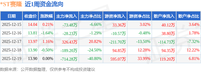 资金流向数据方面,本周*ST赛隆主力资金合计净流出678.76万元,游资资金合计净流入501.01万元,散户资金合计净流入177.75万元。本周资金流向一览见下表: