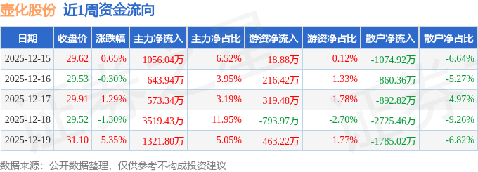 资金流向数据方面,本周壶化股份主力资金合计净流入7114.56万元,游资资金合计净流入224.03万元,散户资金合计净流出7338.59万元。本周资金流向一览见下表: