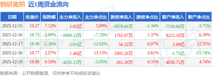 沪深股通持股方面,截止2025年12月19日收盘,钢研高纳深股通持股数为394.34万股,占流通股比为51.0%。