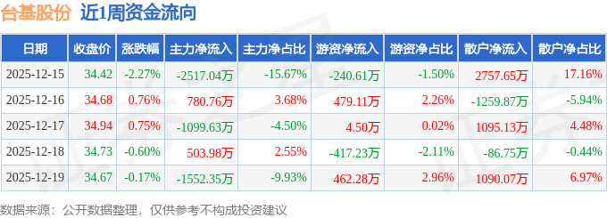资金流向数据方面,本周台基股份主力资金合计净流出3884.29万元,游资资金合计净流入288.06万元,散户资金合计净流入3596.23万元。本周资金流向一览见下表: