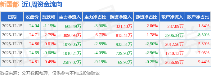 资金流向数据方面,本周新国都主力资金合计净流出2193.88万元,游资资金合计净流出596.55万元,散户资金合计净流入2790.43万元。本周资金流向一览见下表: