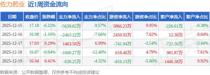 资金流向数据方面,本周佐力药业主力资金合计净流出8869.85万元,游资资金合计净流入7377.47万元,散户资金合计净流入1492.38万元。本周资金流向一览见下表: