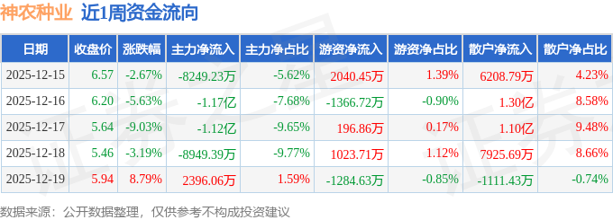 资金流向数据方面,本周神农种业主力资金合计净流出3.77亿元,游资资金合计净流入609.67万元,散户资金合计净流入3.71亿元。本周资金流向一览见下表: