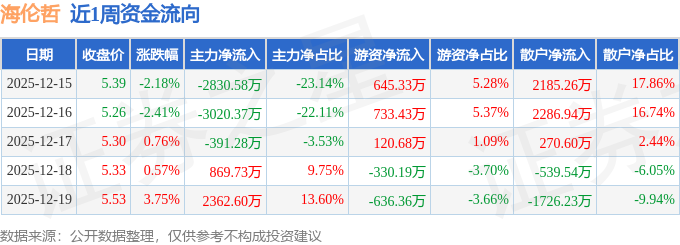 资金流向数据方面,本周海伦哲主力资金合计净流出3009.91万元,游资资金合计净流入532.88万元,散户资金合计净流入2477.03万元。本周资金流向一览见下表: