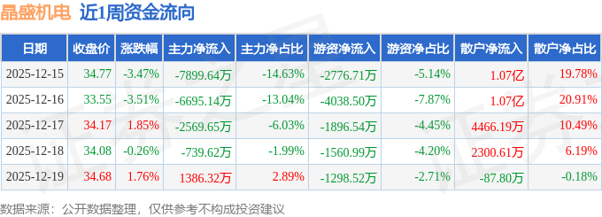 资金流向数据方面,本周晶盛机电主力资金合计净流出1.65亿元,游资资金合计净流出1.16亿元,散户资金合计净流入2.81亿元。本周资金流向一览见下表: