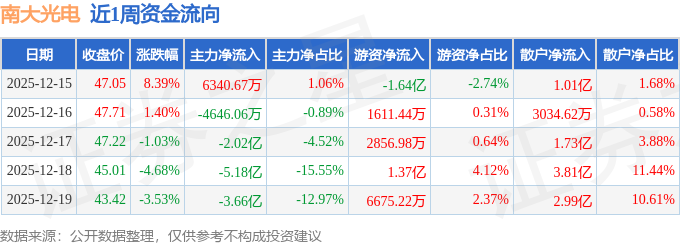 资金流向数据方面,本周南大光电主力资金合计净流出10.69亿元,游资资金合计净流入8418.7万元,散户资金合计净流入9.85亿元。本周资金流向一览见下表: