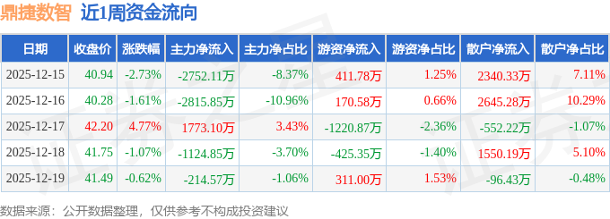 资金流向数据方面,本周鼎捷数智主力资金合计净流出5134.28万元,游资资金合计净流出752.87万元,散户资金合计净流入5887.15万元。本周资金流向一览见下表: