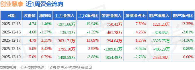 资金流向数据方面,本周创业慧康主力资金合计净流入1221.43万元,游资资金合计净流出938.05万元,散户资金合计净流出283.38万元。本周资金流向一览见下表: