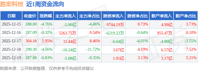 资金流向数据方面,本周胜宏科技主力资金合计净流出9.31亿元,游资资金合计净流出7150.23万元,散户资金合计净流入10.02亿元。本周资金流向一览见下表: