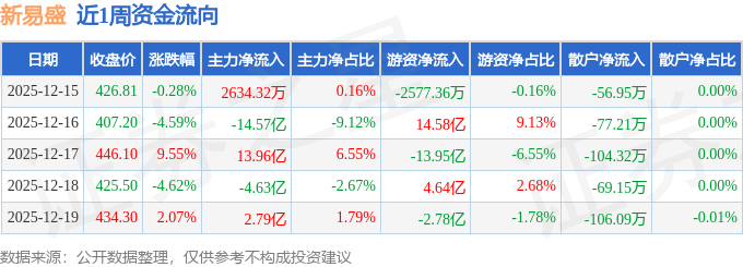 沪深股通持股方面,截止2025年12月19日收盘,新易盛深股通持股数为2992.97万股,占流通股比为478.0%。