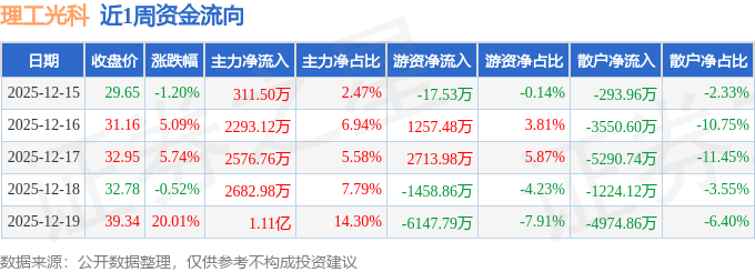 资金流向数据方面,本周理工光科主力资金合计净流入1.9亿元,游资资金合计净流出3652.73万元,散户资金合计净流出1.53亿元。本周资金流向一览见下表: