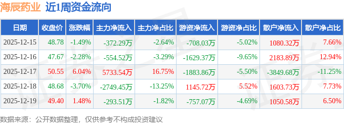 资金流向数据方面,本周海辰药业主力资金合计净流入1763.78万元,游资资金合计净流出3832.61万元,散户资金合计净流入2068.84万元。本周资金流向一览见下表:
