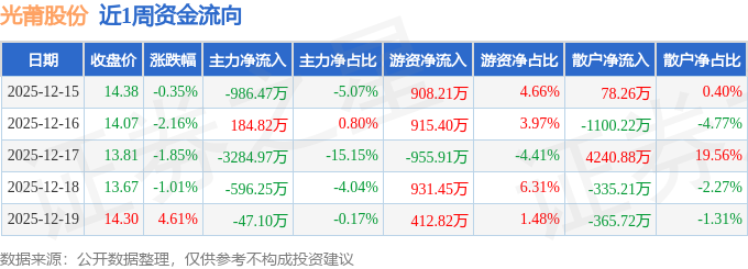资金流向数据方面,本周光莆股份主力资金合计净流出4729.97万元,游资资金合计净流入2211.98万元,散户资金合计净流入2517.99万元。本周资金流向一览见下表: