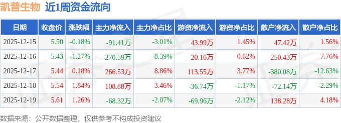 资金流向数据方面,本周凯普生物主力资金合计净流出54.9万元,游资资金合计净流入71.0万元,散户资金合计净流出16.09万元。本周资金流向一览见下表: