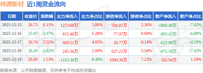 资金流向数据方面,本周祥源新材主力资金合计净流入1774.32万元,游资资金合计净流入2321.12万元,散户资金合计净流出4095.44万元。本周资金流向一览见下表: