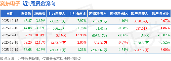 资金流向数据方面,本周奕东电子主力资金合计净流入2.17亿元,游资资金合计净流出8000.88万元,散户资金合计净流出1.37亿元。本周资金流向一览见下表: