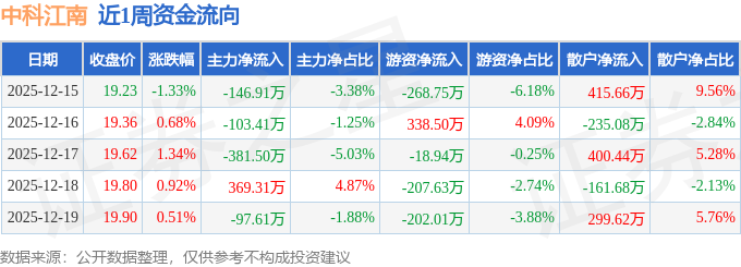 资金流向数据方面,本周中科江南主力资金合计净流出360.13万元,游资资金合计净流出358.82万元,散户资金合计净流入718.95万元。本周资金流向一览见下表: