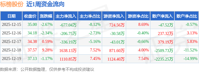 资金流向数据方面,本周标榜股份主力资金合计净流入1529.0万元,游资资金合计净流入2646.98万元,散户资金合计净流出4175.99万元。本周资金流向一览见下表: