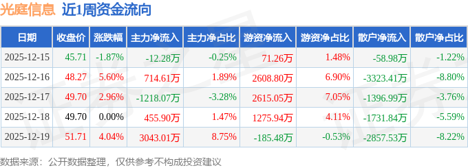 沪深股通持股方面,截止2025年12月19日收盘,光庭信息深股通持股数为26.04万股,占流通股比为60.0%。