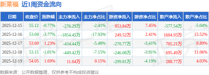 资金流向数据方面,本周新莱福主力资金合计净流出3003.56万元,游资资金合计净流入286.7万元,散户资金合计净流入2716.86万元。本周资金流向一览见下表: