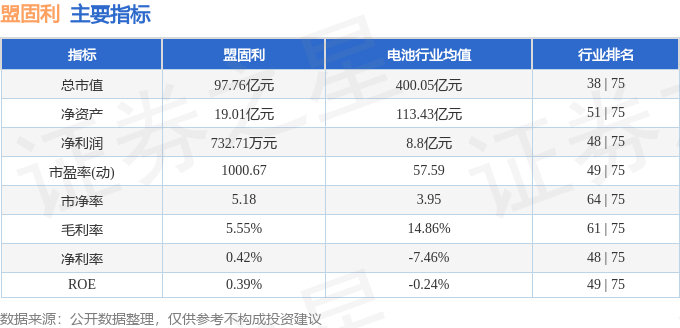 盟固利(301487)主营业务:新能源电池正极材料的研发、生产和销售。 盟固利2025年三季报显示,前三季度公司主营收入16.3亿元,同比上升24.22%;归母净利润732.71万元,同比下降18.87%;扣非净利润979.06万元,同比上升64.13%;其中2025年第三季度,公司单季度主营收入6.12亿元,同比上升25.96%;单季度归母净利润428.87万元,同比上升238.56%;单季度扣非净利润795.16万元,同比上升2910.78%;负债率46.32%,财务费用1084.89万元,毛利率5.55%。