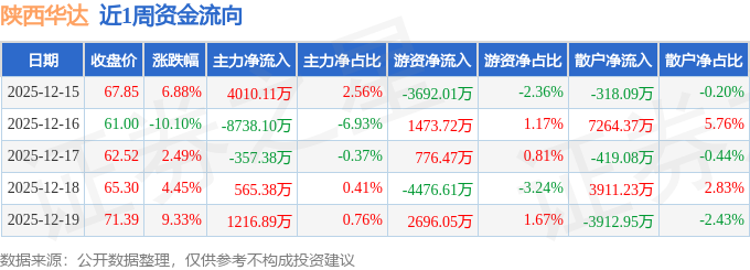 资金流向数据方面,本周陕西华达主力资金合计净流出3303.1万元,游资资金合计净流出3222.38万元,散户资金合计净流入6525.48万元。本周资金流向一览见下表: