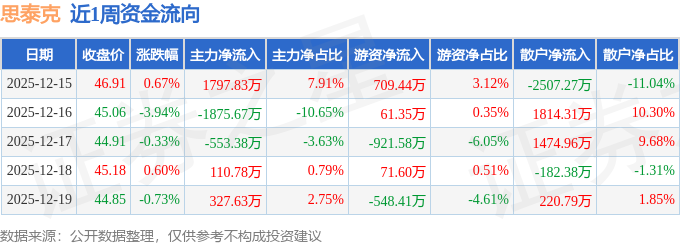 资金流向数据方面,本周思泰克主力资金合计净流出192.81万元,游资资金合计净流出627.59万元,散户资金合计净流入820.4万元。本周资金流向一览见下表: