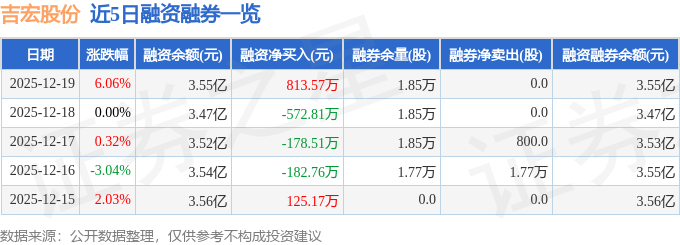 吉宏股份融资融券信息显示,融资方面,当日融资买入2623.15万元,融资偿还1809.58万元,融资净买入813.57万元。融券方面,融券卖出0.0股,融券偿还0.0股,融券余量1.85万股,融券余额30.75万元。融资融券余额3.55亿元。