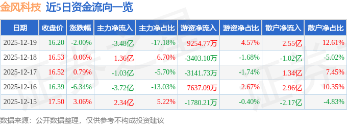 证券之星消息,截至2025年12月19日收盘,金风科技(002202)报收于16.2元,下跌2.0%,换手率3.71%,成交量124.21万手,成交额20.25亿元。