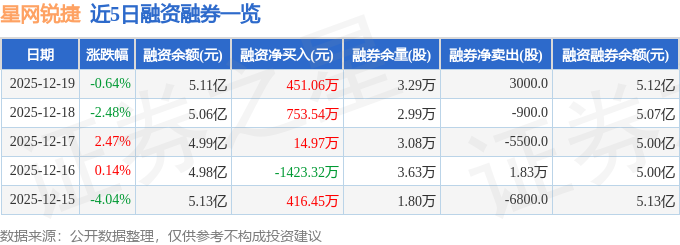 星网锐捷融资融券信息显示,融资方面,当日融资买入3191.0万元,融资偿还2739.94万元,融资净买入451.06万元,连续3日净买入累计1219.57万元。融券方面,融券卖出4000.0股,融券偿还1000.0股,融券余量3.29万股,融券余额92.55万元。融资融券余额5.12亿元。