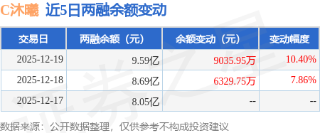 证券之星消息,12月19日,C沐曦(688802)融资买入4.38亿元,融资偿还3.48亿元,融资净买入9035.95万元,融资余额9.59亿元,当日融资净买入排名第32,近3个交易日已连续净买入累计9.59亿元。