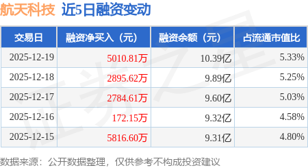 证券之星消息,12月19日,航天科技(000901)融资买入3.27亿元,融资偿还2.77亿元,融资净买入5010.81万元,融资余额10.39亿元,近3个交易日已连续净买入累计1.07亿元,近20个交易日中有13个交易日出现融资净买入。