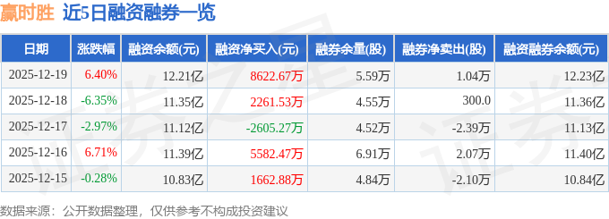 赢时胜融资融券信息显示,融资方面,当日融资买入4.06亿元,融资偿还3.2亿元,融资净买入8622.67万元。融券方面,融券卖出1.07万股,融券偿还300.0股,融券余量5.59万股,融券余额125.5万元。融资融券余额12.23亿元。