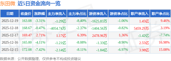证券之星消息,截至2025年12月19日收盘,东田微(301183)报收于163.08元,下跌3.31%,换手率15.94%,成交量9.34万手,成交额15.33亿元。