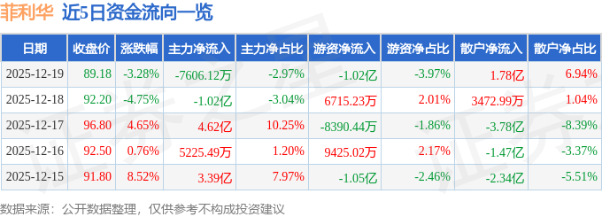 12月19日的资金流向数据方面,主力资金净流出7606.12万元,占总成交额2.97%,游资资金净流出1.02亿元,占总成交额3.97%,散户资金净流入1.78亿元,占总成交额6.94%。