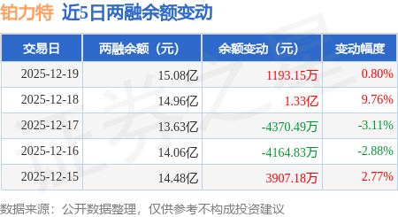 证券之星消息,12月19日,铂力特(688333)融资买入3.26亿元,融资偿还3.13亿元,融资净买入1262.46万元,融资余额15.03亿元,近20个交易日中有15个交易日出现融资净买入。