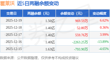 证券之星消息,12月19日,霍莱沃(688682)融资买入4018.1万元,融资偿还3048.52万元,融资净买入969.59万元,融资余额1.56亿元,近3个交易日已连续净买入累计1582.14万元,近20个交易日中有12个交易日出现融资净买入。