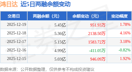 证券之星消息,12月19日,鸿日达(301285)融资买入3454.89万元,融资偿还2502.96万元,融资净买入951.93万元,融资余额5.45亿元,近3个交易日已连续净买入累计4674.14万元,近20个交易日中有15个交易日出现融资净买入。