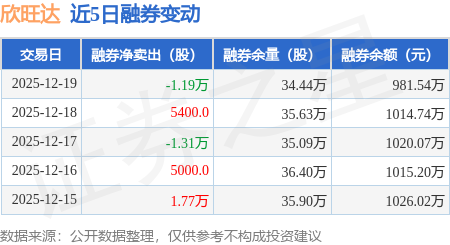 证券之星消息,12月19日,欣旺达(300207)融资买入8056.93万元,融资偿还7324.7万元,融资净买入732.23万元,融资余额19.55亿元。