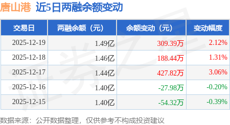 证券之星消息,12月19日,唐山港(601000)融资买入749.25万元,融资偿还442.94万元,融资净买入306.31万元,融资余额1.43亿元,近3个交易日已连续净买入累计932.15万元,近20个交易日中有12个交易日出现融资净买入。