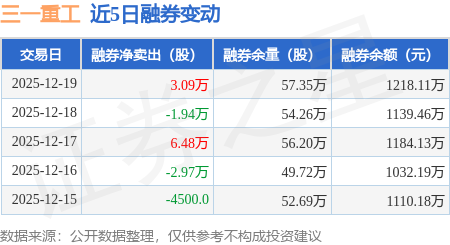 证券之星消息,12月19日,三一重工(600031)融资买入7553.51万元,融资偿还7381.05万元,融资净买入172.46万元,融资余额17.07亿元。