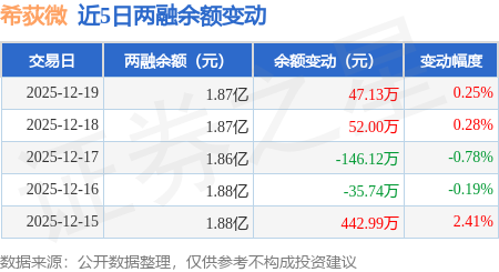 证券之星消息,12月19日,希荻微(688173)融资买入1202.23万元,融资偿还1161.24万元,融资净买入40.99万元,融资余额1.87亿元。