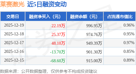 证券之星消息,12月19日,莱赛激光(920363)融资买入218.06万元,融资偿还195.87万元,融资净买入22.19万元,融资余额996.95万元,近3个交易日已连续净买入累计95.66万元。