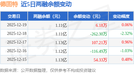 证券之星消息,12月19日,德固特(300950)融资买入576.17万元,融资偿还569.99万元,融资净买入6.18万元,融资余额1.11亿元。