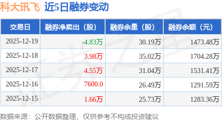 证券之星消息,12月19日,科大讯飞(002230)融资买入1.01亿元,融资偿还1.01亿元,融资净买入5.28万元,融资余额57.85亿元。