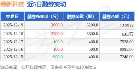 证券之星消息,12月19日,德新科技(603032)融资买入2044.52万元,融资偿还2043.69万元,融资净买入0.84万元,融资余额1.43亿元。