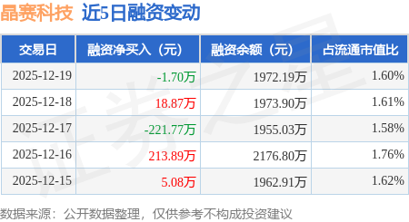 证券之星消息,12月19日,晶赛科技(920981)融资买入70.43万元,融资偿还72.13万元,融资净卖出1.7万元,融资余额1972.19万元,近20个交易日中有11个交易日出现融资净买入。