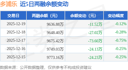 证券之星消息,12月19日,多浦乐(301528)融资买入234.19万元,融资偿还245.7万元,融资净卖出11.52万元,融资余额9636.88万元。