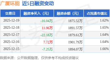 证券之星消息,12月19日,广厦环能(920703)融资买入166.29万元,融资偿还182.34万元,融资净卖出16.04万元,融资余额1875.52万元。